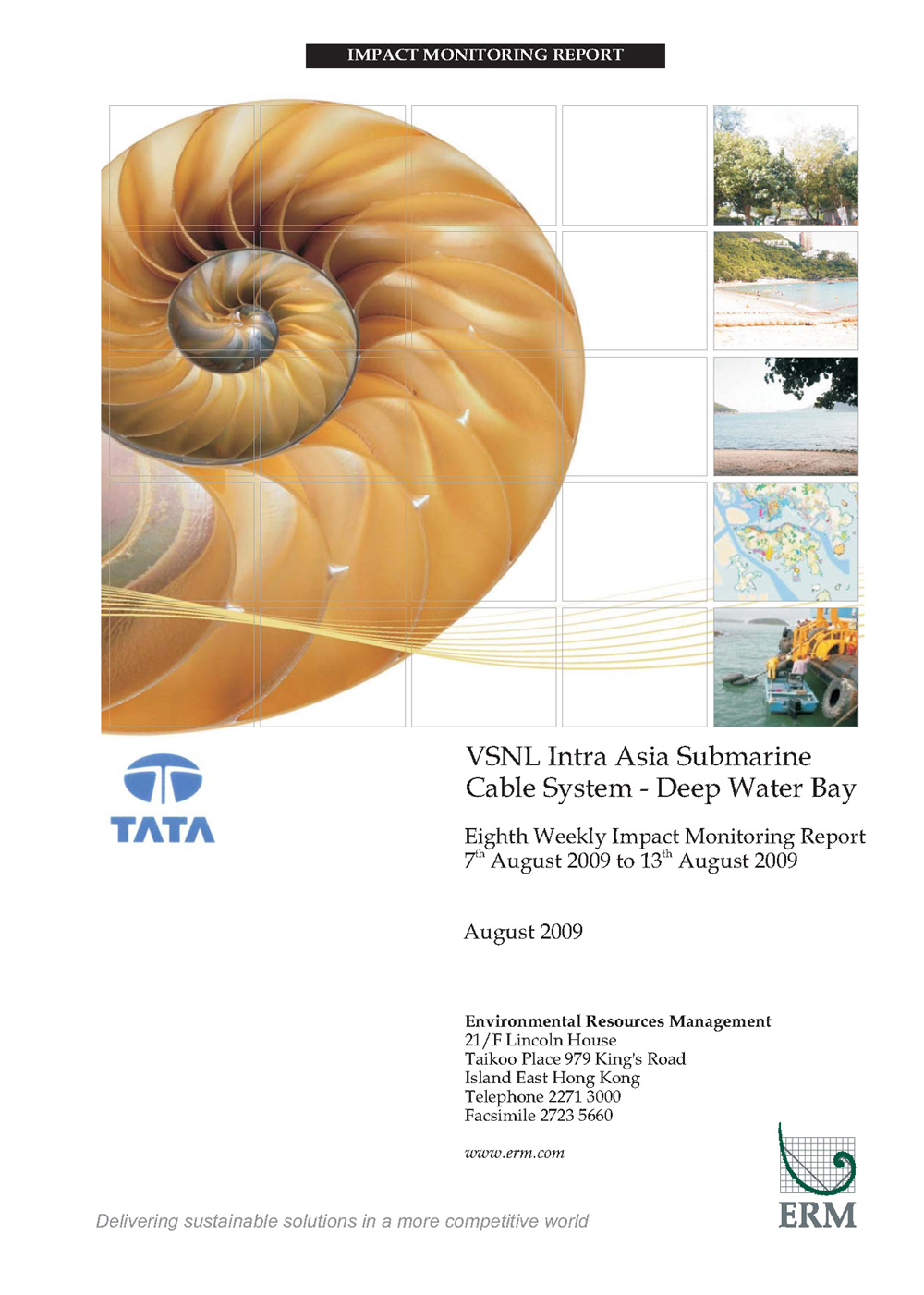 ERM-Hong Kong, Limited (ERM) was appointed by Tata Communications (Bermuda) Ltd (formerly Videsh Sanchar Nigam Limited (VSNL)) as the Monitoring Team (MT) to implement the Environmental Monitoring and Audit (EM&A) programme for the VSNL Intra Asia Submarine Cable System ¡V Deep Water Bay (thereinafter called the (¡¥Project¡¦)).
