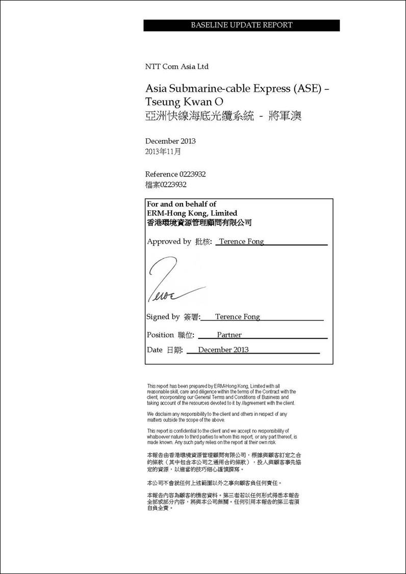 total length of cable in Hong Kong SAR waters is approximately 33.5 km. A map of the cable route is presented in