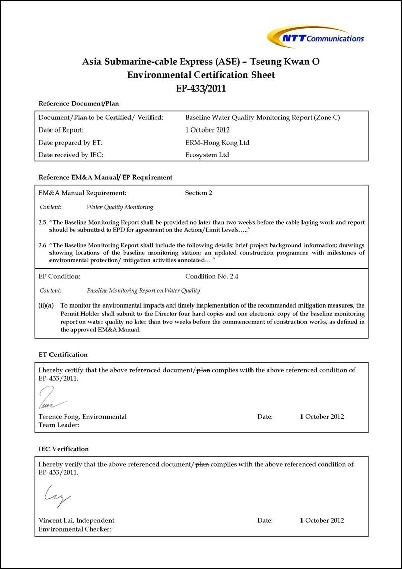 Com Asia (NTTCA) proposes to install a telecommunication cable (Asia