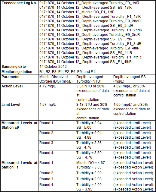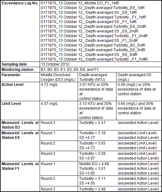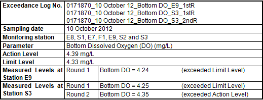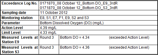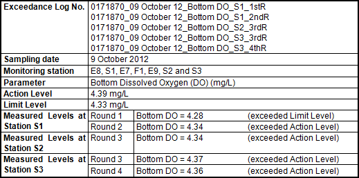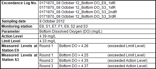 - 22:15) in the 3rd round of marine water quality monitoring. Therefore, the exceedance of the Action