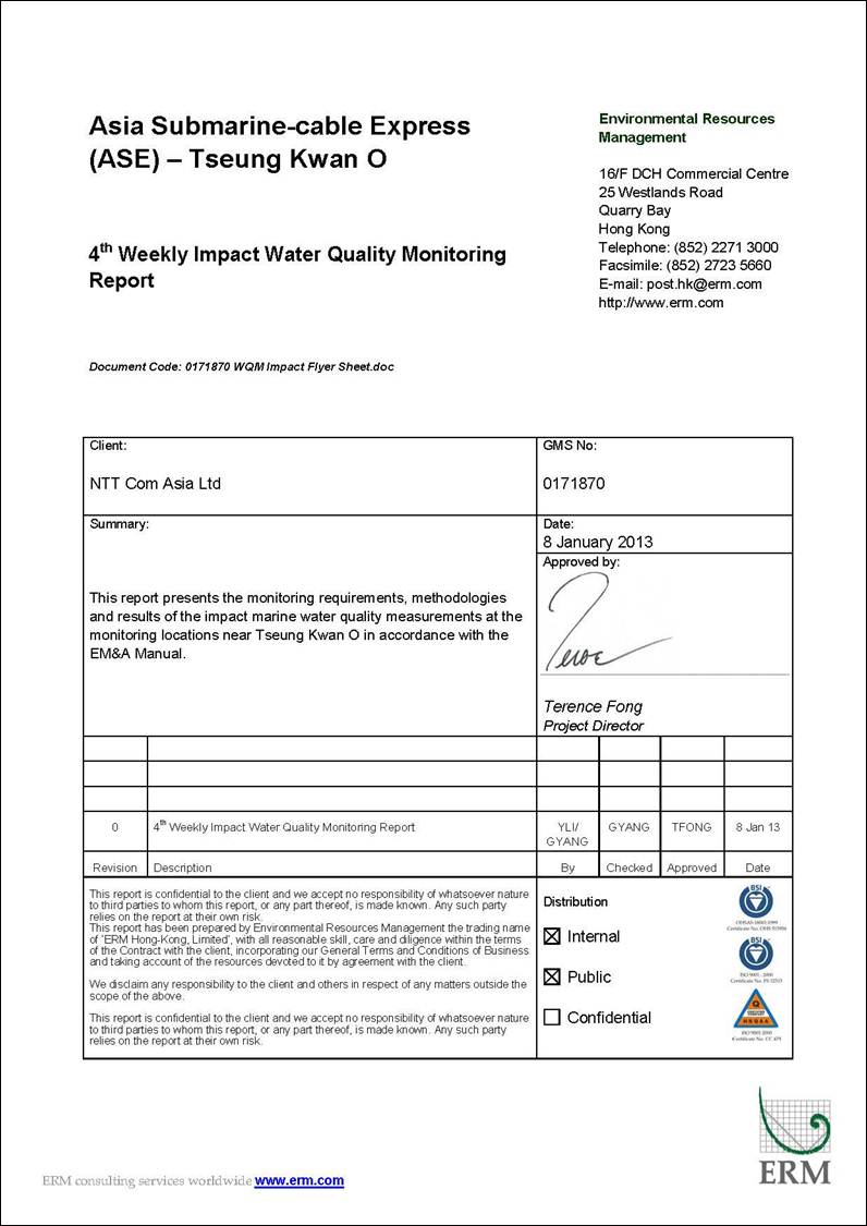 This is the Fourth Weekly Impact Water Quality Monitoring Report, which summarises the
