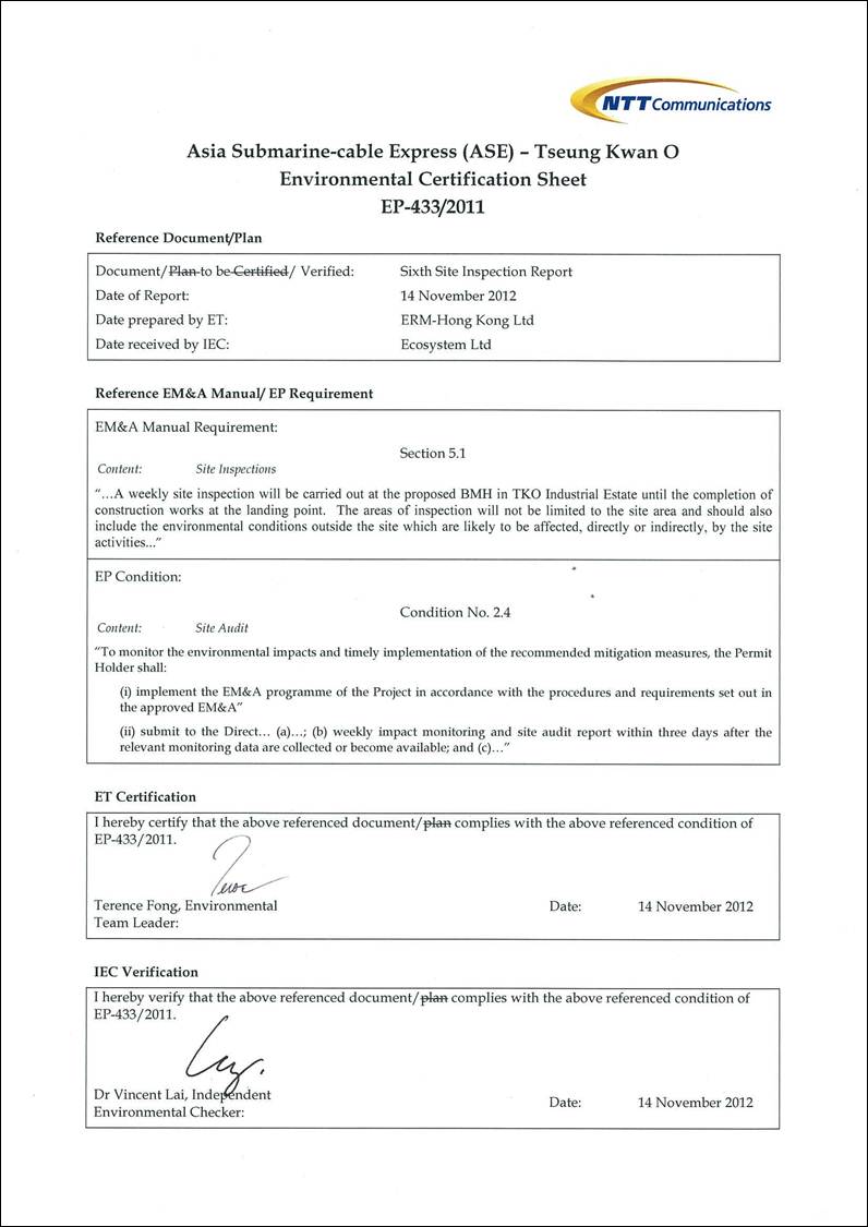 (ERM) was appointed by NTT Com Asia (NTTCA) as the Environmental Team to conduct