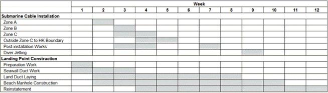 cable laying works in Zone A, Zone B and Zone C were involved from 5 November