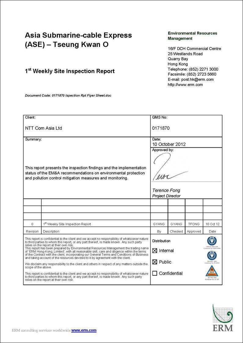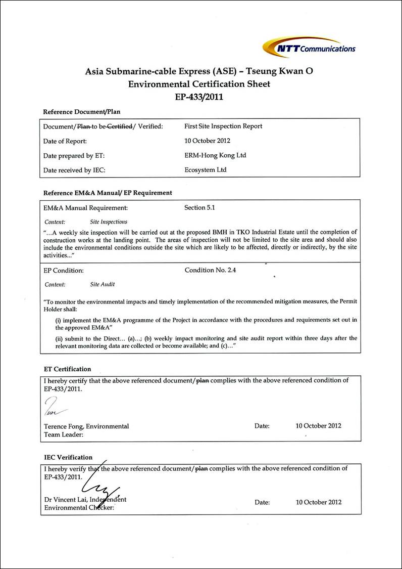 (ERM) was appointed by NTT Com Asia (NTTCA) as the Environmental Team to conduct