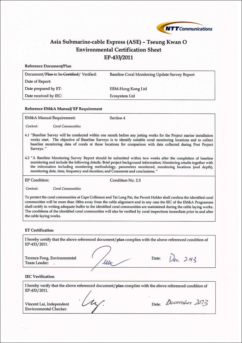 installation and after its completion in early 2013 as required in the EM&A Manual.